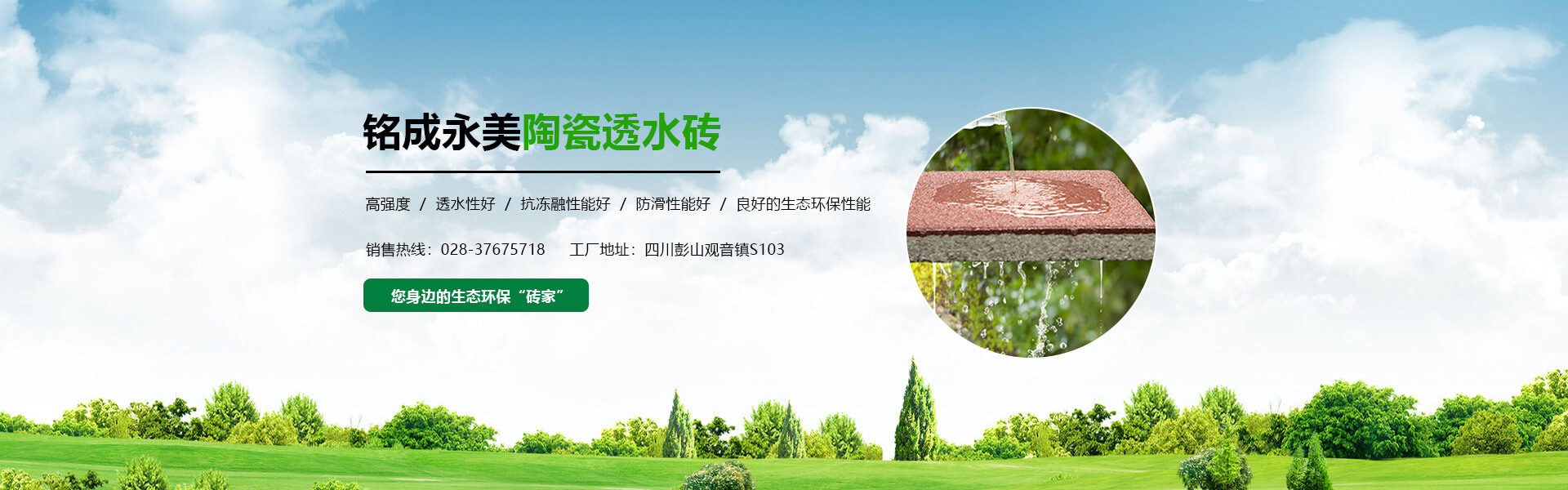 四川銘成永美環保科技有限公司(www_mcotcn_com.cxrbbs.com)是國內非常早研究探索海綿城市的企業之一,公司主導產品:海綿城市鋪路磚家---銘成永美生態陶瓷透水磚已在全國多個重點項目使用。公司透水混凝土、雨水收集利用系統正在全國推廣。公司將整合海綿城市規劃設計、污水處理、污泥利用、環保設備、社會資本等海綿城市相關產業。為解決城市“熱島效應”、地表硬化,防止城市內澇,營造高質量的自然生態環境,改善城市生態平衡而不斷努力!公司將充分利用現有的互聯網資訊平臺,整合生態海綿城市產業鏈,打造集互聯網、科研、生產、銷售、規劃設計、PPP項目營運、工程施工為一體的綜合性環保科技公司,已初步建立覆蓋全國的業務團隊和渠道。